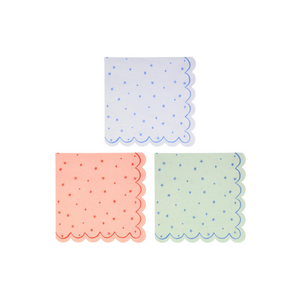 A fun mix of colors - pink, blue and mint. They are crafted from 3-ply paper, so are practical as well as decorative.