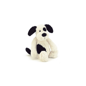 Silky-soft and lovingly loyal, Bashful Black & Cream Puppy wants to play all day! His smudgy black patch and sooty tail make him even more adorable!