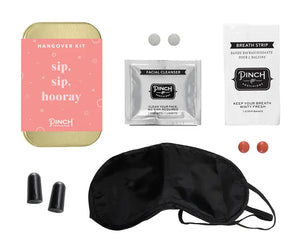 Alcohol isn't just for hands anymore. And our Hangover Kits are the perfect solution for when you might have one too many. Now in a new mini tin size, each kit contains an eye mask, ear plugs, a facial cleansing towelette, pain reliever, electrolytes, and a breath strip.
