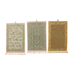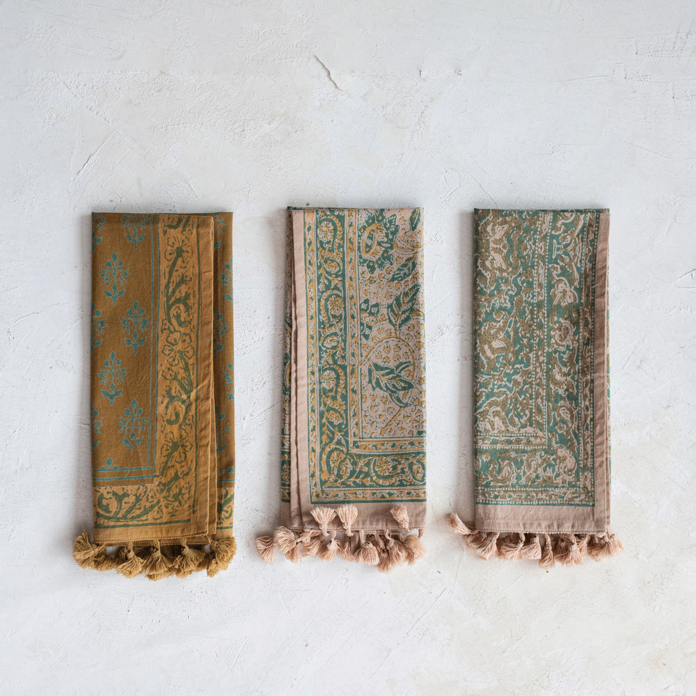 28"L x 18"W Cotton Printed Tea Towel w/ Design, Tassels & Loop, Multi Color, 3 Styles (sold separately)