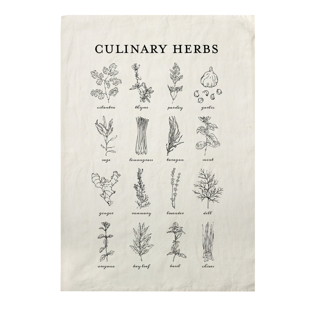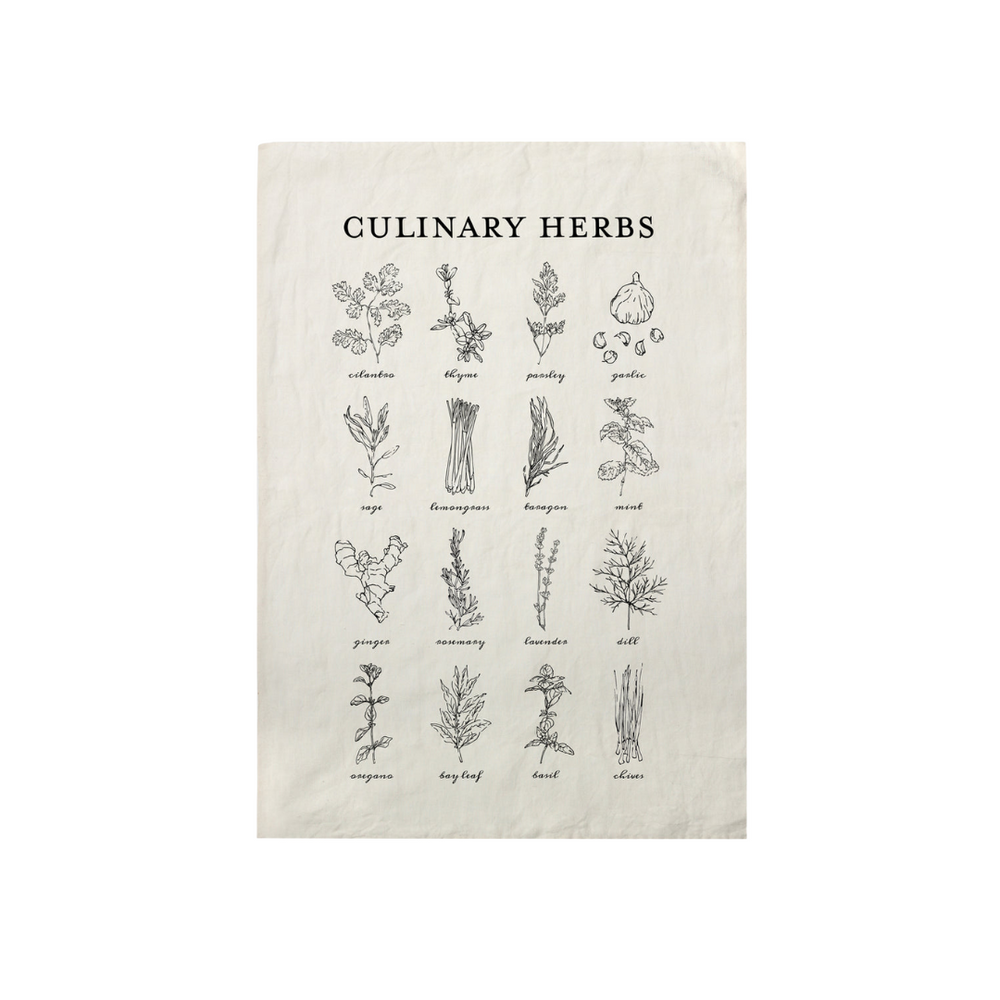 • Design: Culinary Herbs• Color: Black/Oyster White• 1 tea towel• 18" x 28"• 100% Pure Linen• Hand-Screened in India