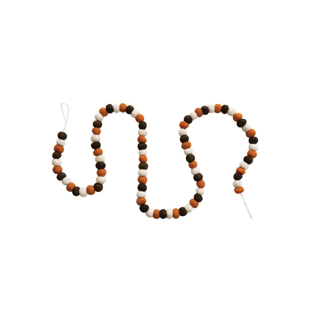 Wool Felt Ball Garland, Brown, Cream & Orange Color