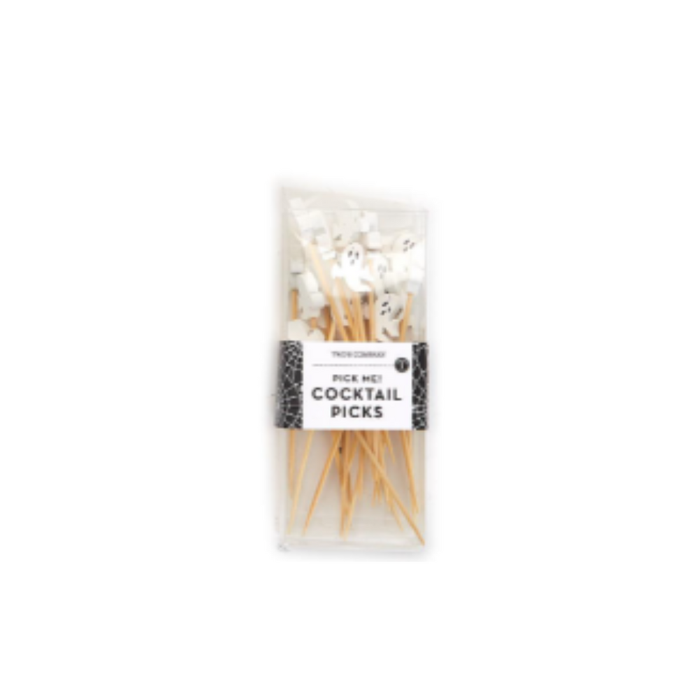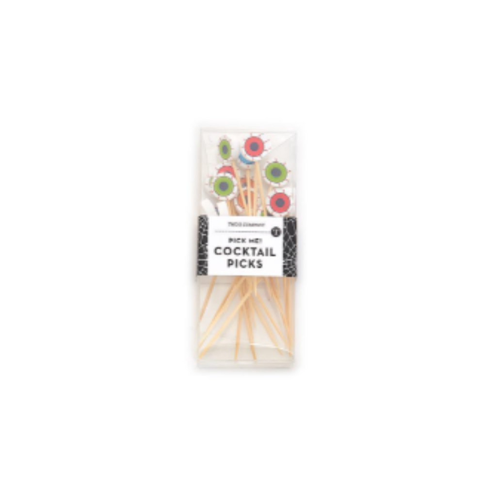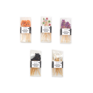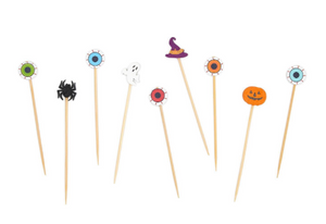 These bamboo picks add a festive touch to any appetizer or snack bar. Choose from a ghost, witch hat, pumpkin, spider, and eyeball designs, all crafted from natural bamboo.