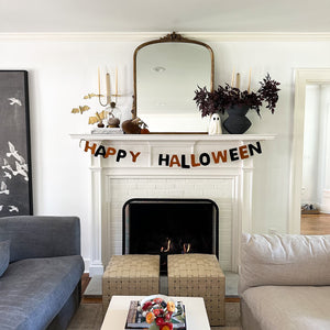 Handmade Wool Felt Banner "Happy Halloween", Orange & Black