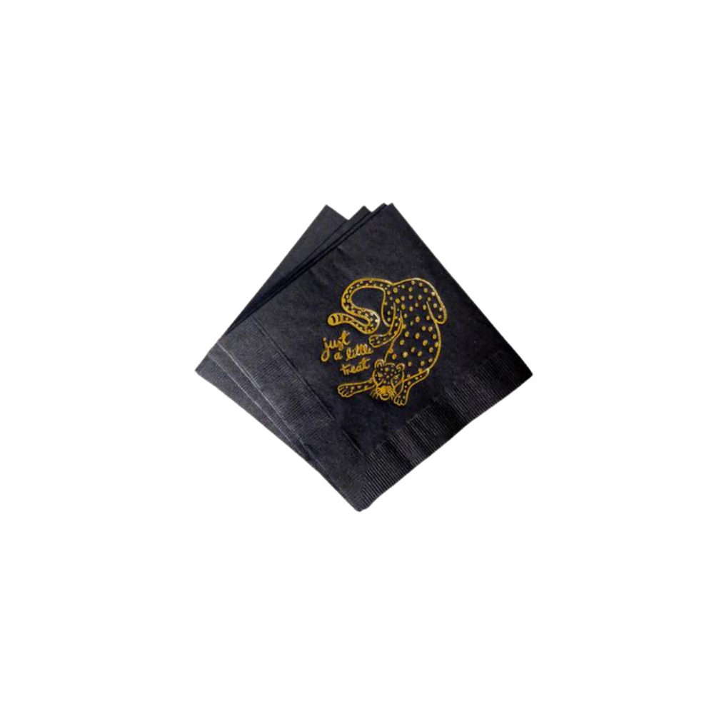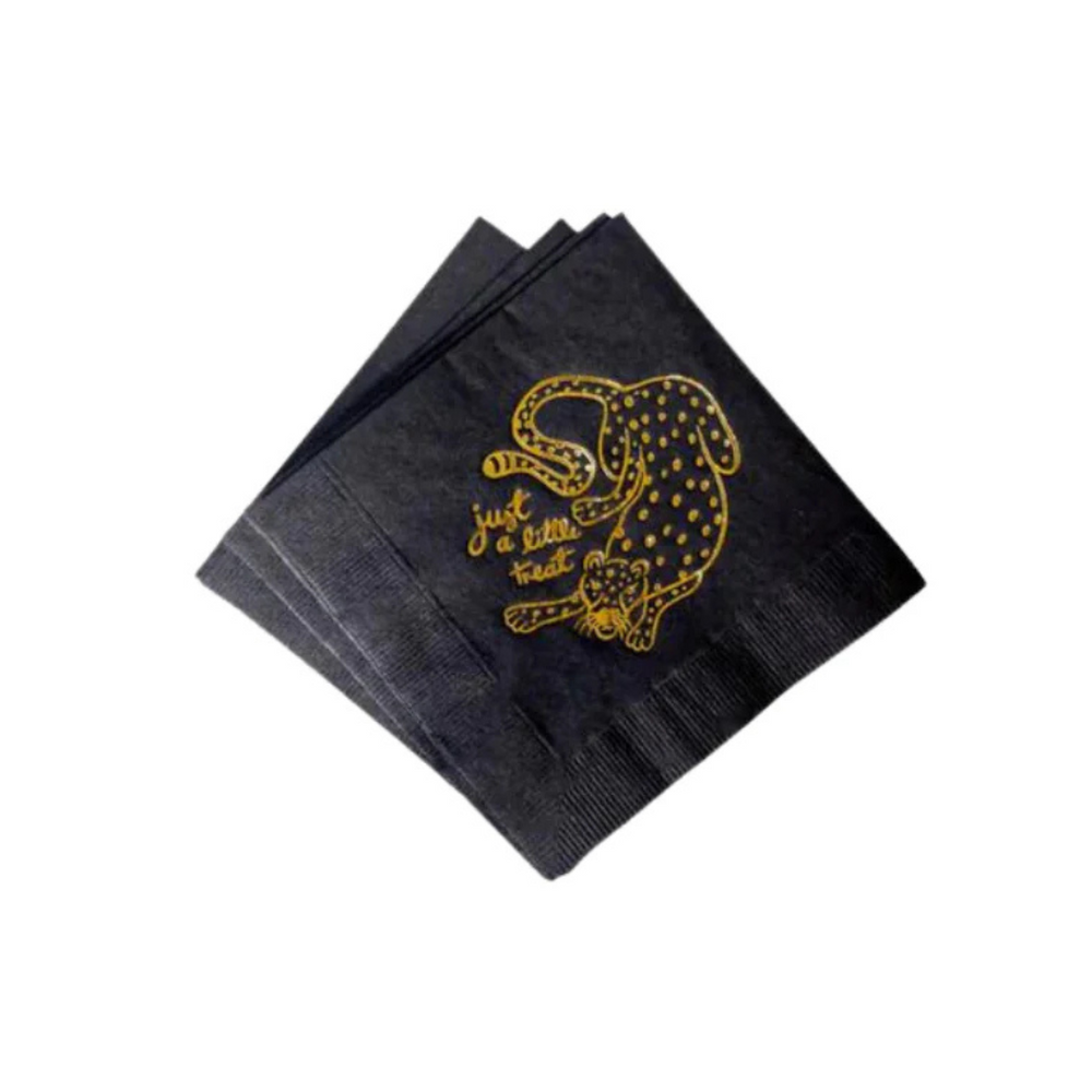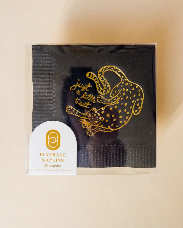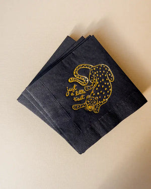 These cheeky cocktail napkins make a great hostess gift. Set of 20 3 ply napkins with gold foil printing. Measures roughly 5 x 5 inches, and will arrive packed in a clear box.