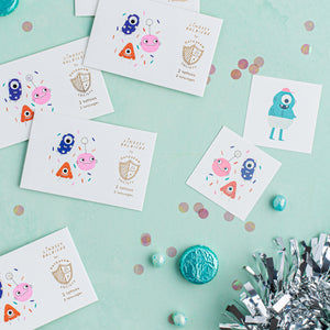 We're not afraid of these monsters! featuring a bright color palette full of neons and pops of holographic silver foil, these monster tattoos deliver monstrous amounts of fun!