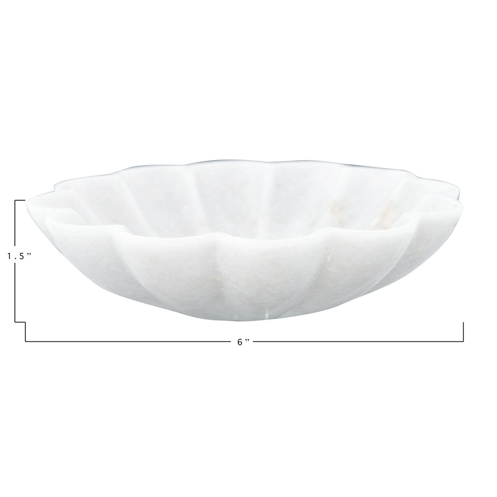 Elegantly designed for decoration, this carved marble dish can also meet your serving needs. It is shaped like a flower and will be a beautiful addition to the table full of salad, potatoes or a healthy serving of vegetables. The floral design also makes it a great piece for holding a set of floating candles.