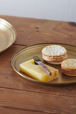 A round tray with a standing edge. The lines on the edge give it a slightly casual image. It can be used as a tray or a plate. **Due to the handmade character irregularities may occur.**Do not leave the product wet for long periods, as this may cause rust or oxidation.
