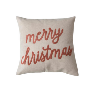 26" Square Cotton Pillow with Embroidery "Merry Christmas", Cream Color and Red