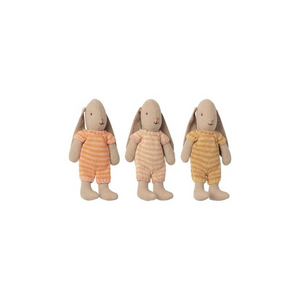 This sweet bunny in micro size is dressed in a striped suit knitted in a soft linen/cotton blend. It fits all the micro size furniture and will surely lead to many hours of play! The knitted suit is made in 3 lovely color combinations.