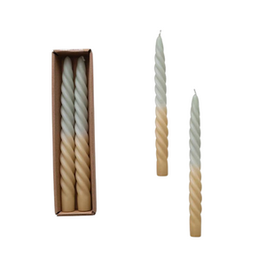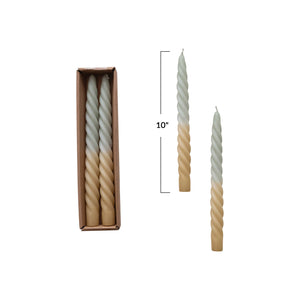 Unscented Twisted Taper Candles, Mint Ombre, Set of 2