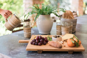 EtúHOME’s serving boards are intended for serving only and should not be used for cutting or chopping. To protect and preserve the integrity and longevity of the piece, we recommend using a barrier such as parchment paper, a plate or a bowl for non-dry and hot ingredients.