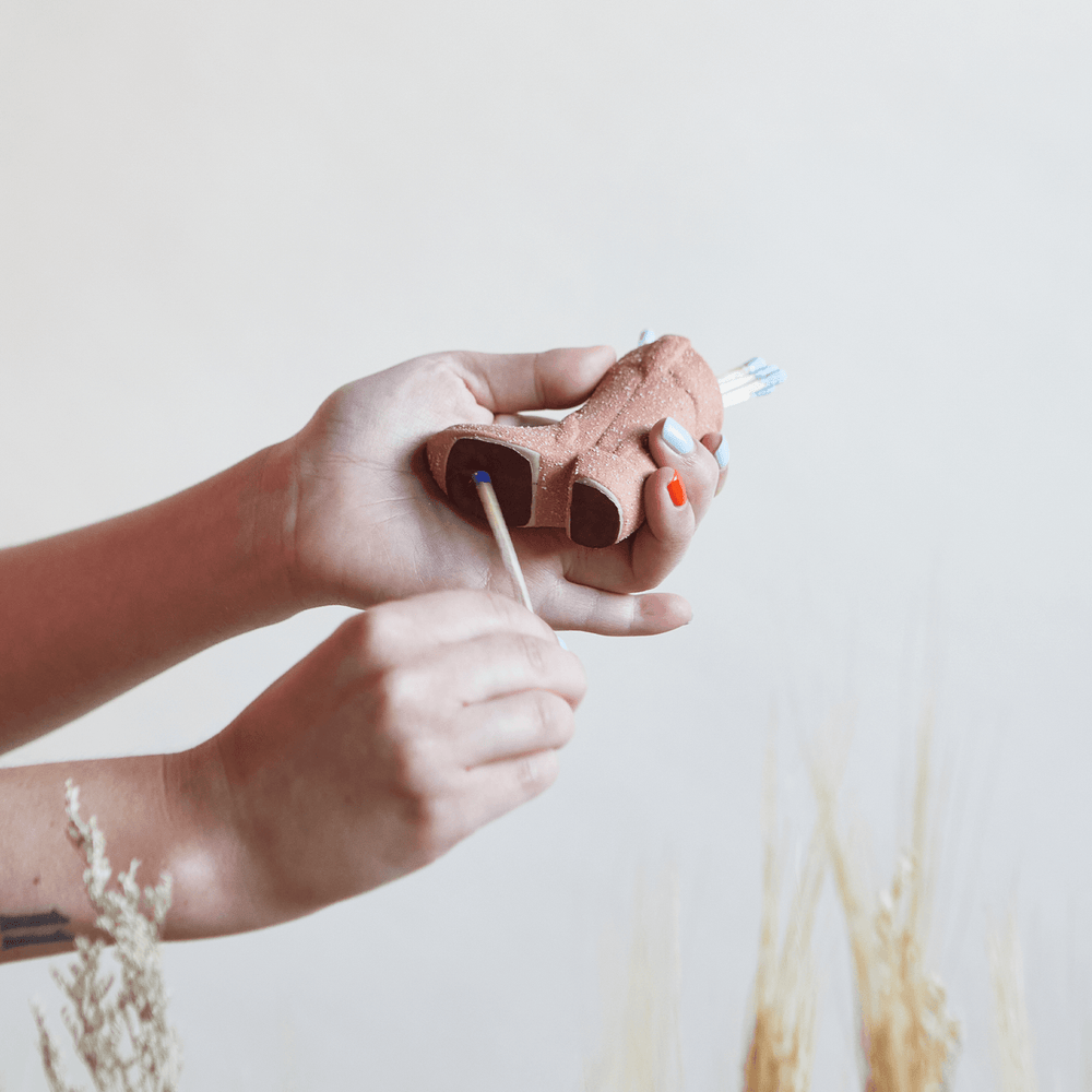 After the safety matches run out, this holder is compatible with any match and can provide light by striking on the rough ceramic surface. Whether you are daydreaming about being back in the Music City or wanting a Western vibe, these ceramic boot and hat accessories make the perfect gift set or bookshelf accessory.
