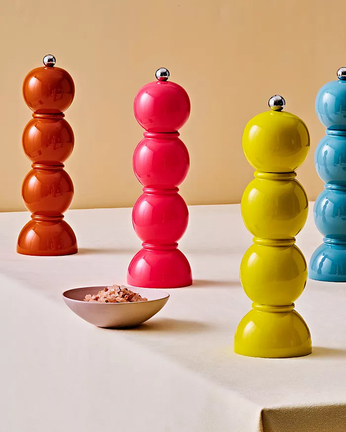 An Addison Ross exclusive design, our sage green lacquered bobbin shaped mill comes with both an S and a P stainless steel screw knob so you can decide for yourself whether you want this to be a Salt Grinder or a Pepper Grinder.