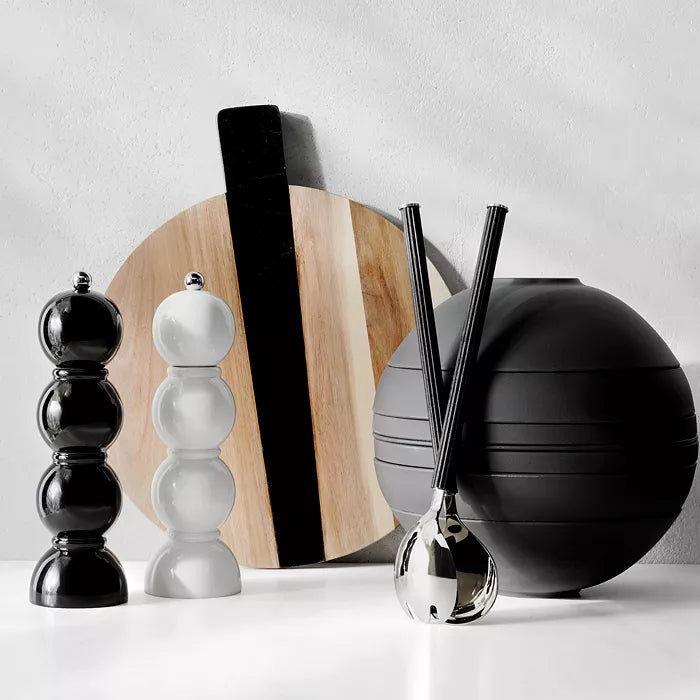 The mill is made from solid Rubber wood fully FSC certified, finished with 8 coats of high gloss lacquer hand polished between each coat. Using a ceramic grinder mechanism, the mill requires a clockwise motion to activate. The mills can be used for grinding either Rock Salt (Dry Salt Crystals) or Black Peppercorns. Not to be used for sea salt, wet salt, or dried wet salt or pink peppercorns.