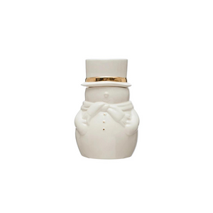 Stoneware Snowman Cookie Jar w/ Gold Electroplating, White