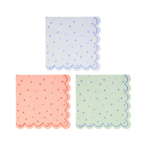 A fun mix of colors - pink, blue and mint. They are crafted from 3-ply paper, so are practical as well as decorative.
