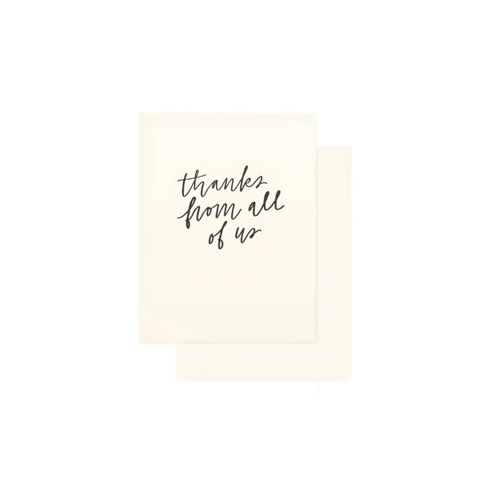 Send a thoughtful message with one of our letterpress printed thank you greeting cards. A blank interior lets you add your own personal touch. Hand printed in Los Angeles. * 4.25 x 5.5 inches * Folded Card * Letterpress Printed * Cream Paper * Black Ink * Cream Envelope