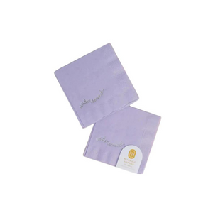 Set of 20 3 ply napkins with silver foil printing. Measures roughly 5 x 5 inches, and will arrive packed in a clear box.